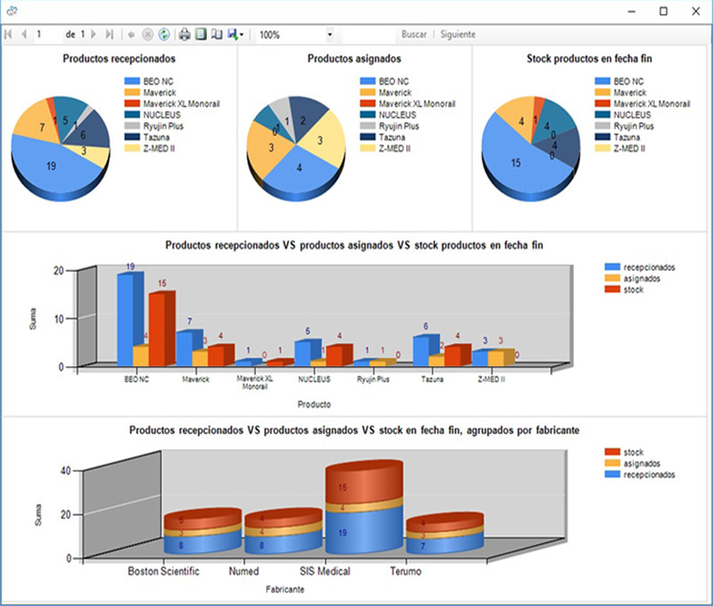Reports by manufacturer, family, product, patient, operator, or service (Hemodynamics, Electrophysiology, Operating Room, etc.) – configurable on demand.